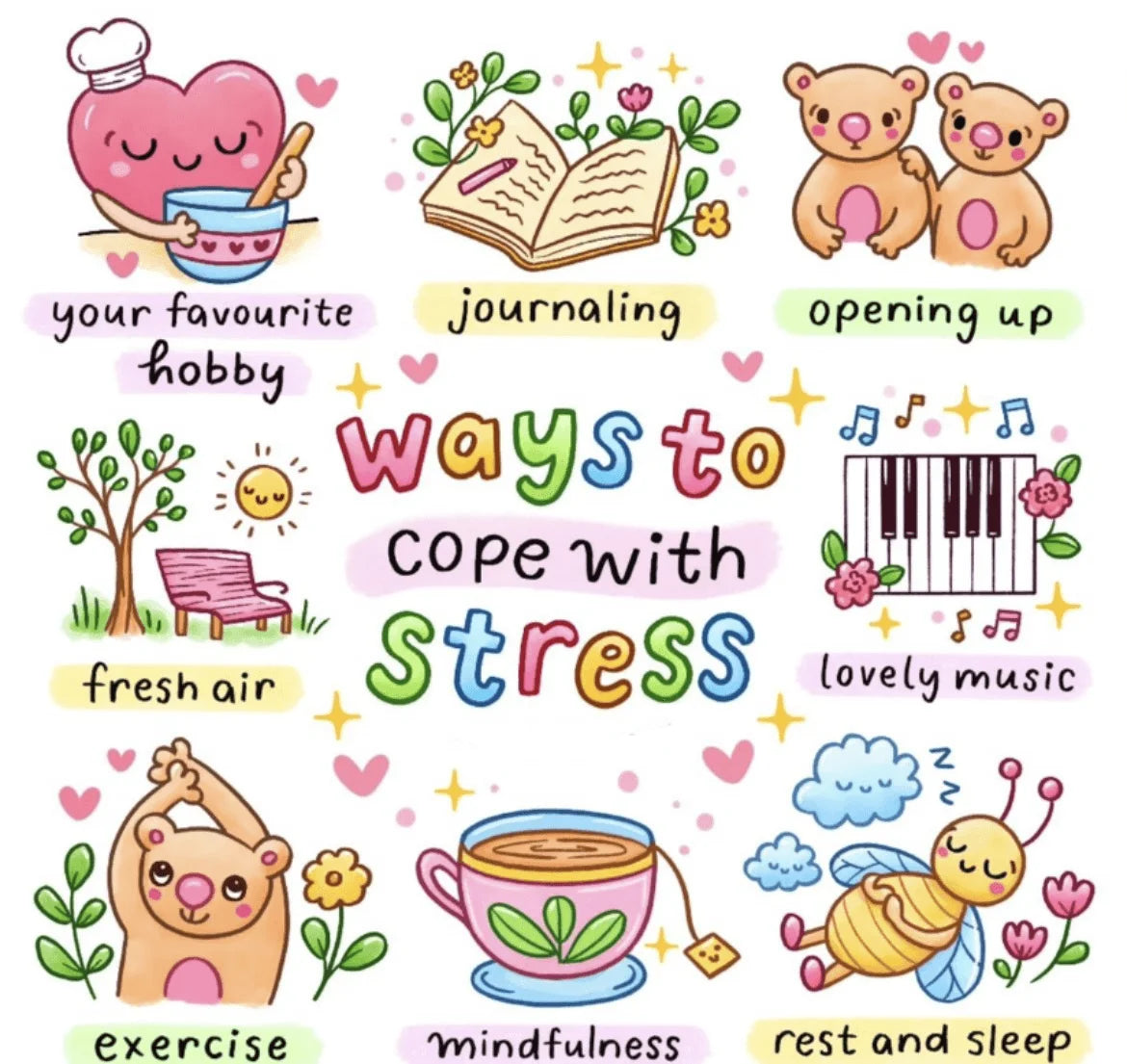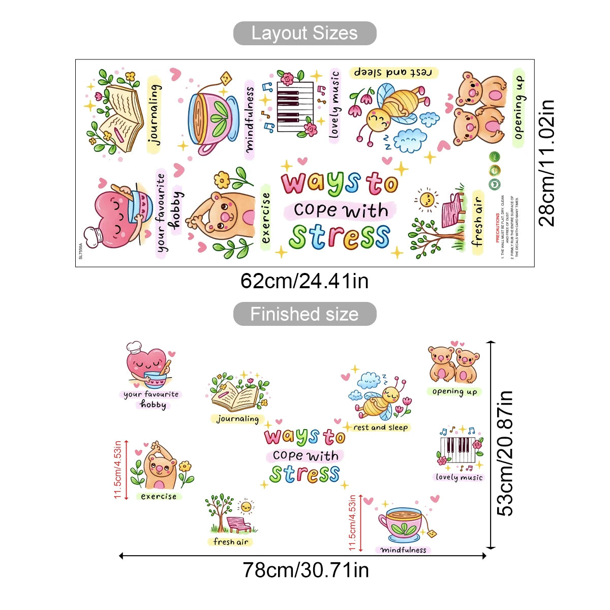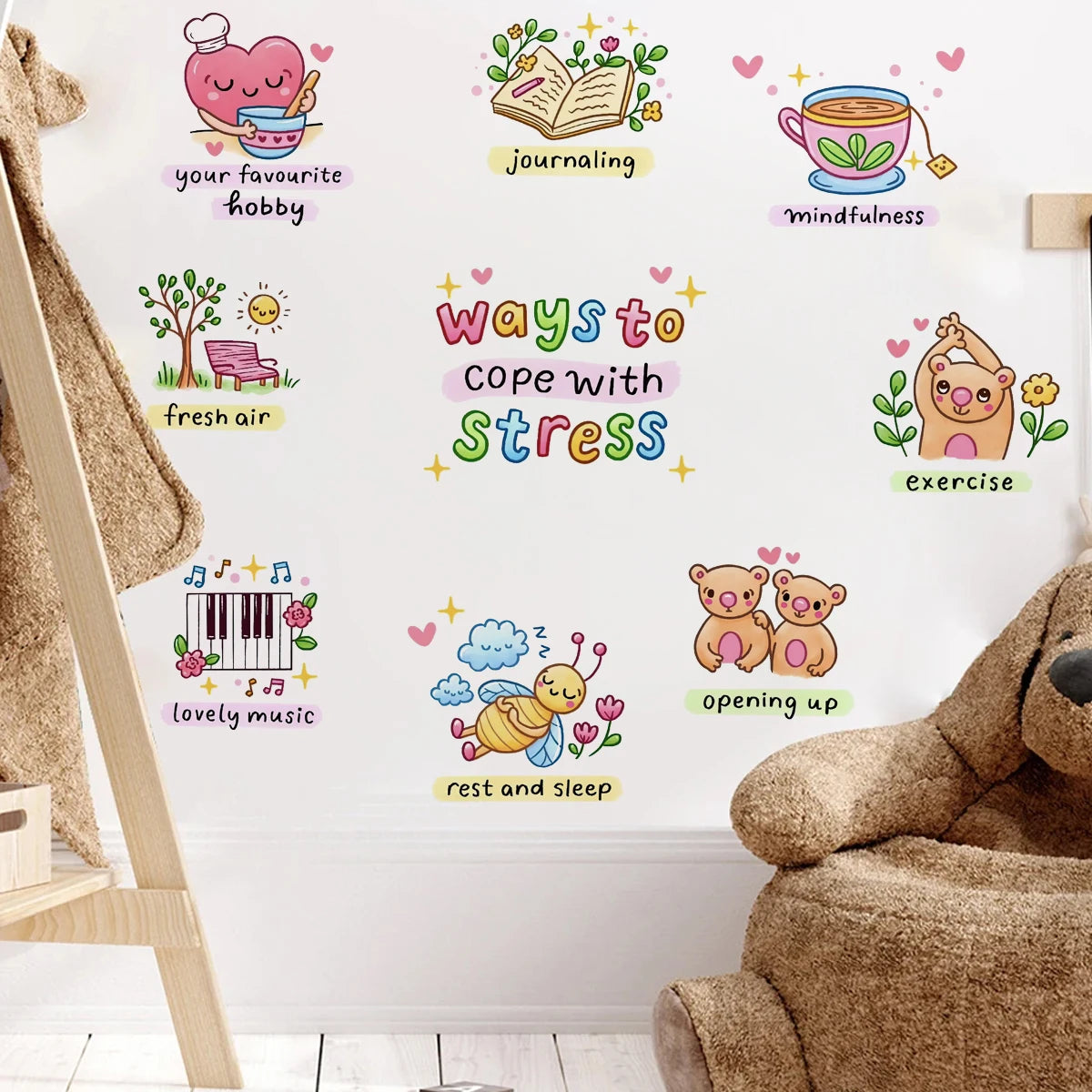 Positivity & Affirmation Wall Decal Stickers - Ways to Cope with Stress