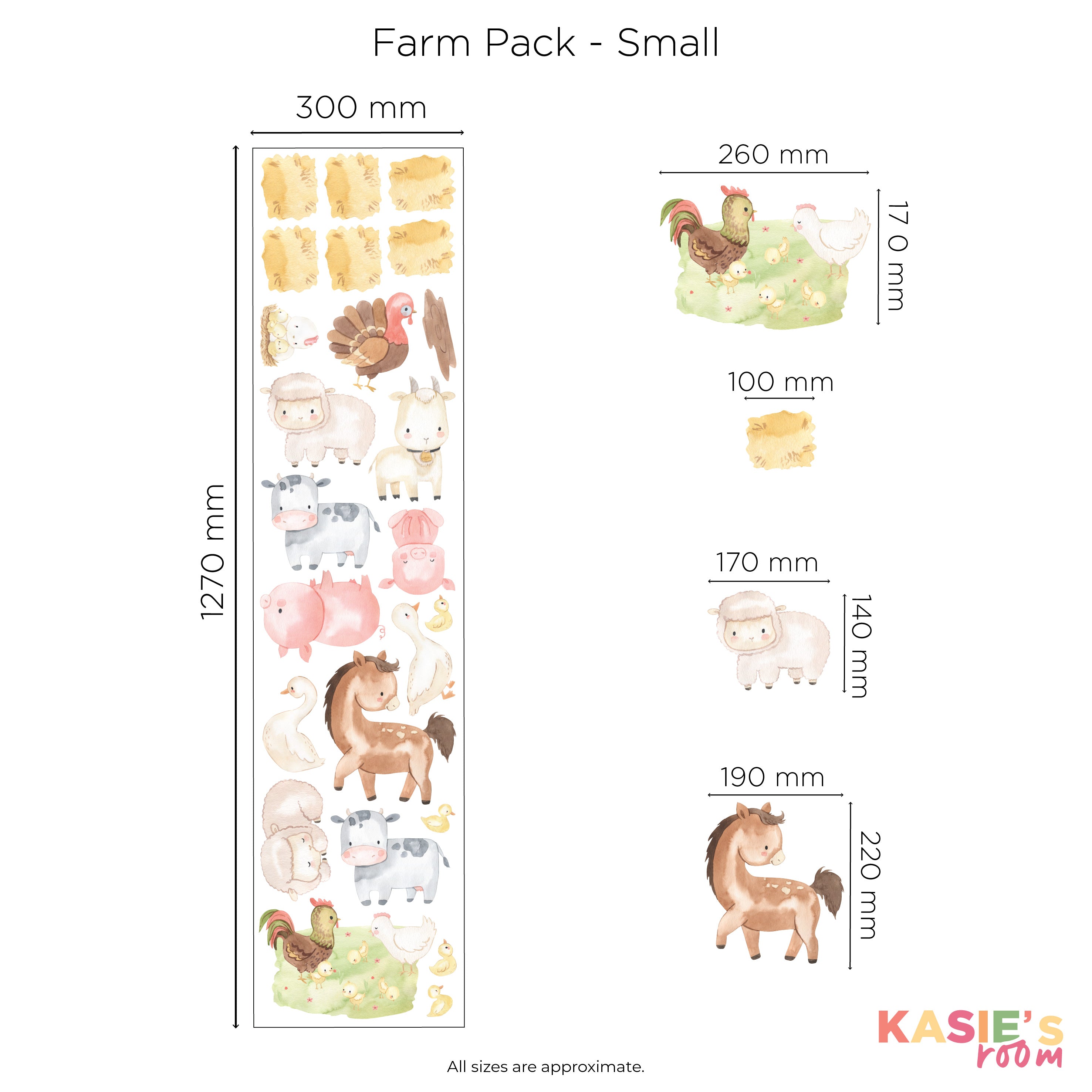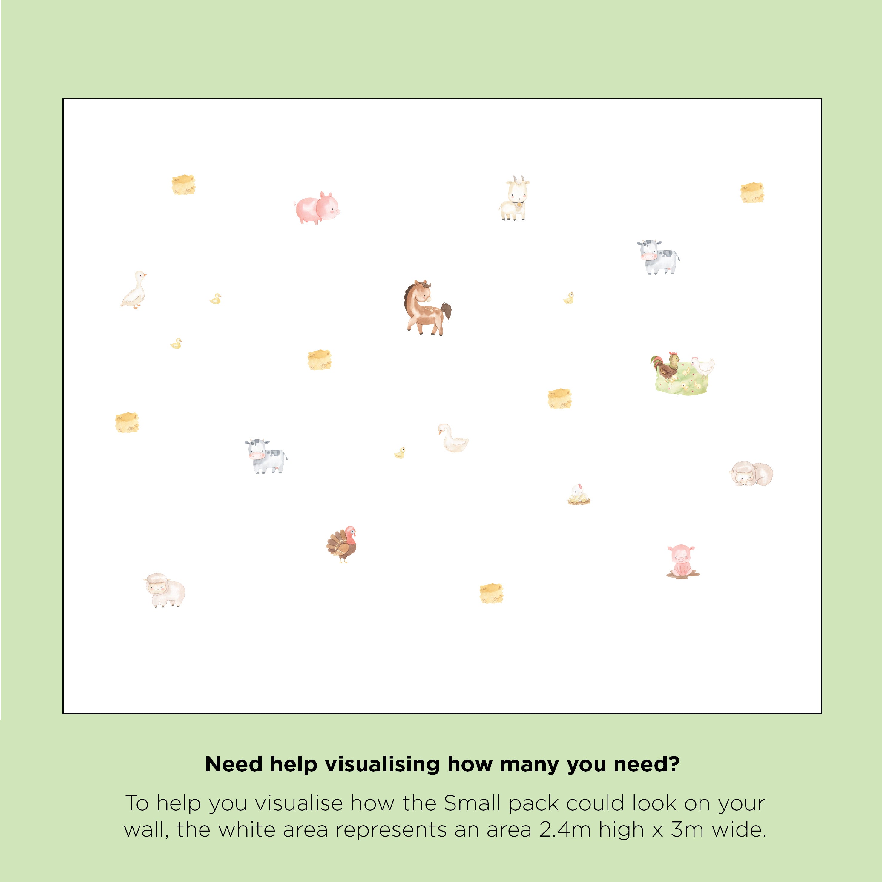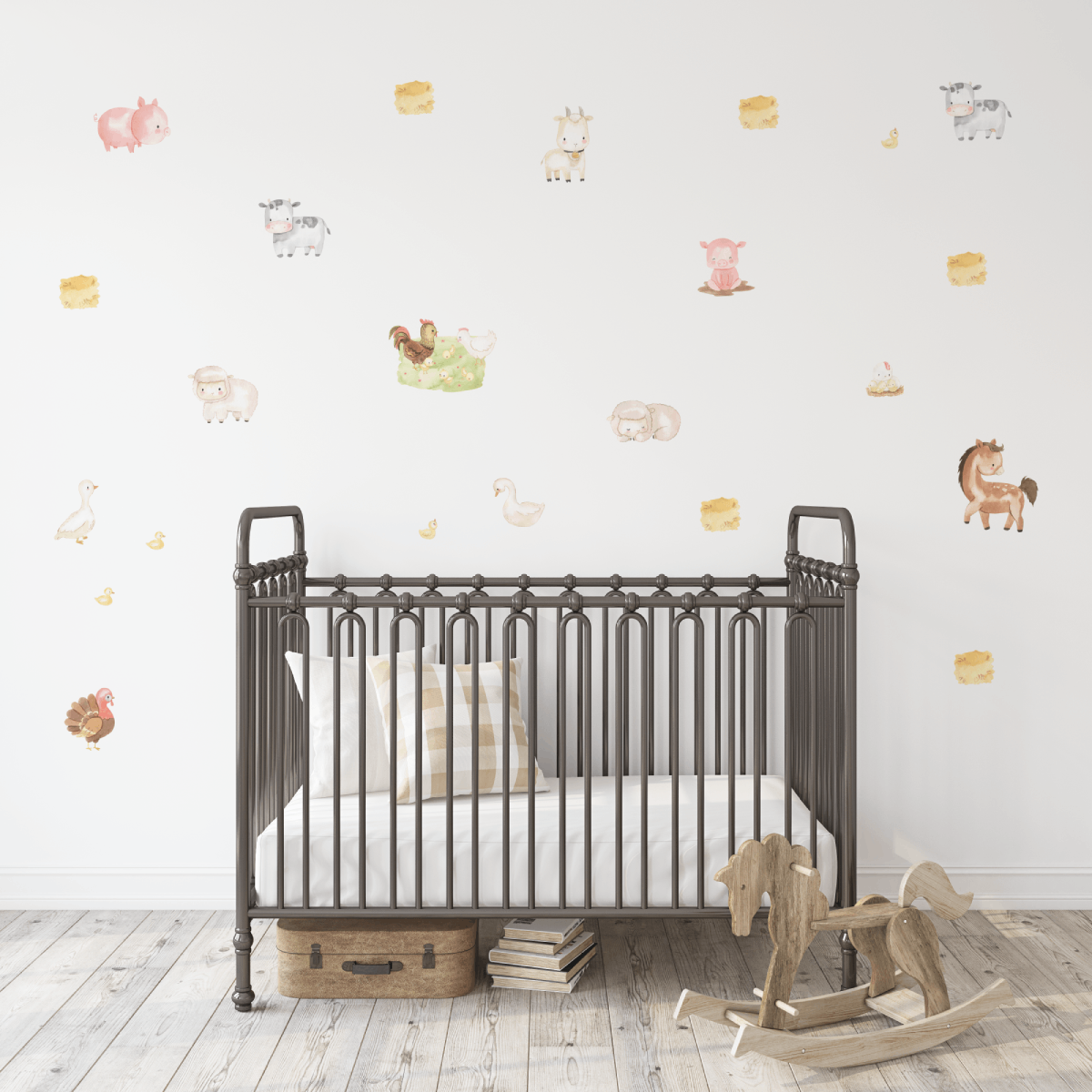 Turn your child’s room into a playful farmyard adventure with this charming set of farm themed decals. Friendly animals, tractors, hay bales, and classic country details come together to create a warm, storybook style scene that sparks curiosity, storytelling, and endless make‑believe moments just perfect for the nursery, bedroom or playroom.