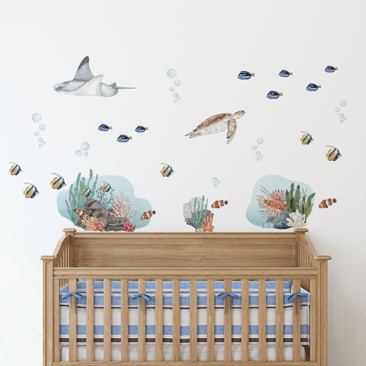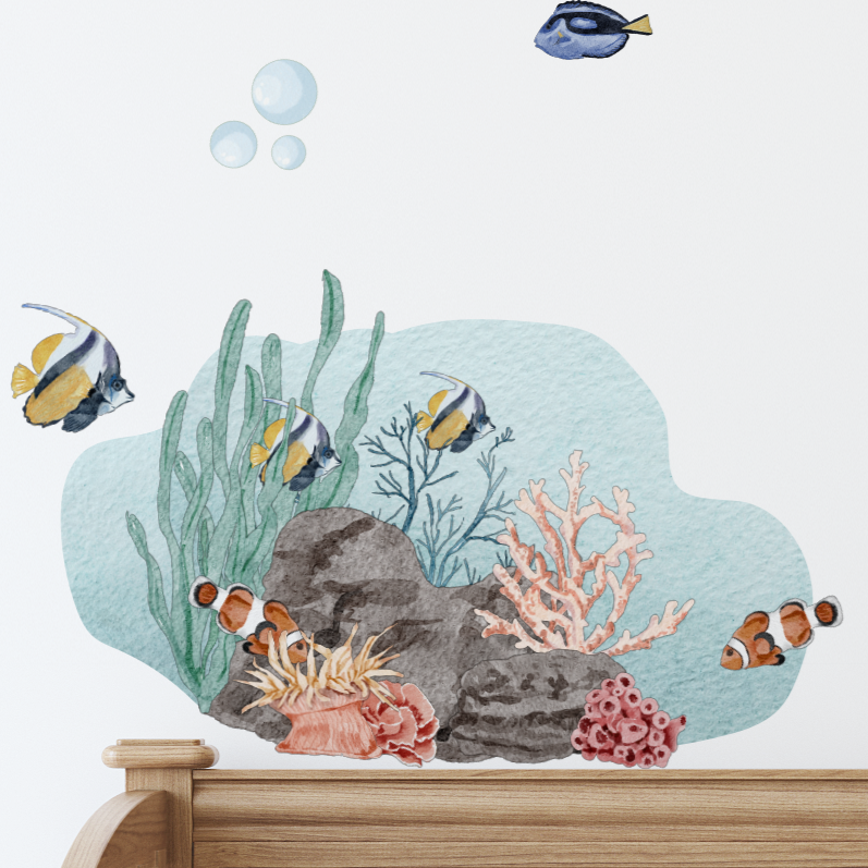 Transform your child’s room into a vibrant underwater world with this beautifully illustrated set of ocean-themed fabric wall decals. Featuring friendly sea creatures, playful ocean scenes, and rich colours, this pack is designed to spark curiosity and storytelling.